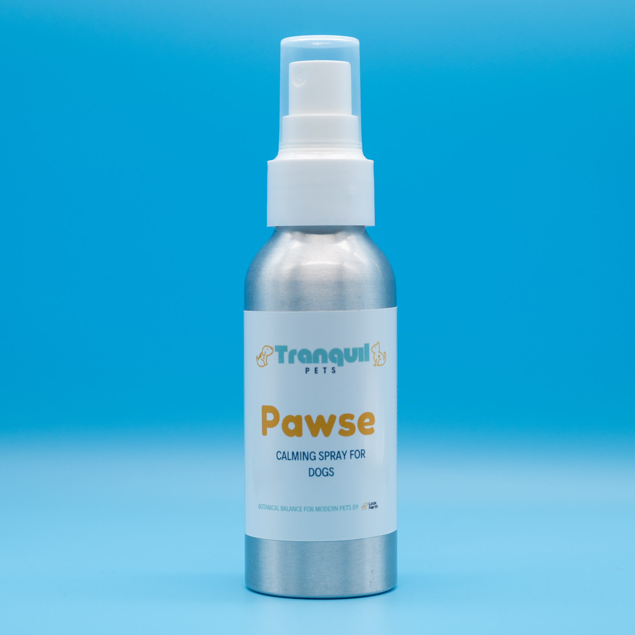 Pawse Calming Spray is a 100% natural calming and uplifting remedy for dogs and large animals.